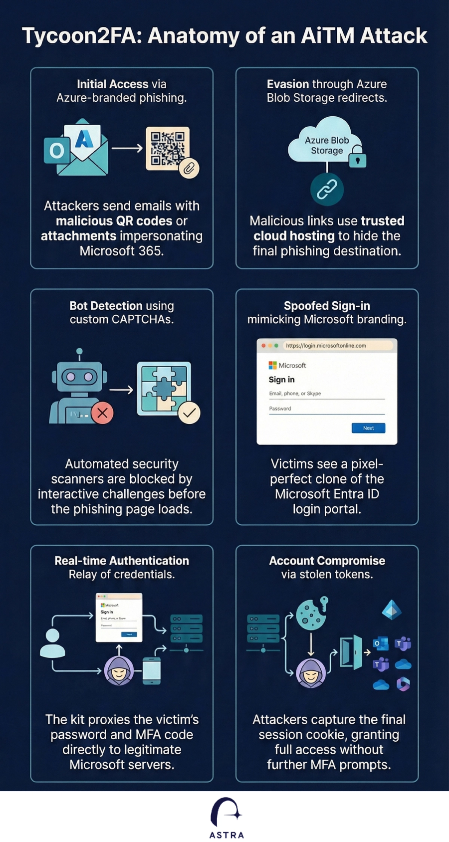- AiTM Sophistication: By intercepting session cookies during the login process, attackers gain full access to accounts and can maintain persistence even after a password reset.